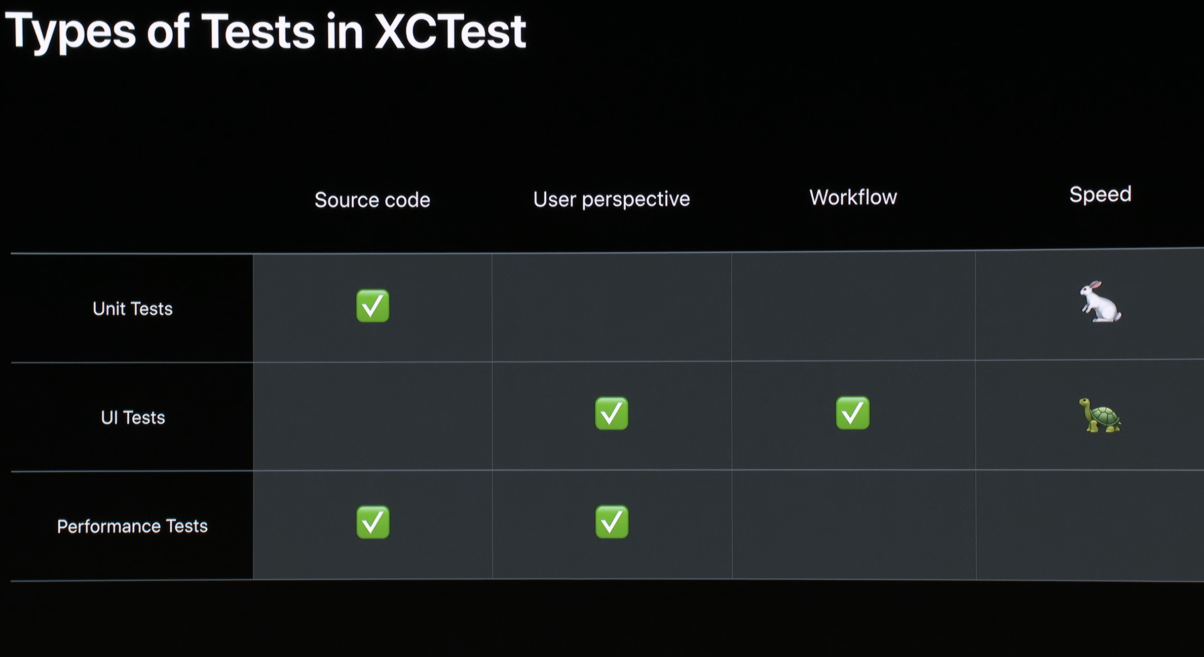 }Hopefully, everything described above gives you a sense of just how much power and flexibility is available to you using the tools that come with Xcode. XCTest is a powerful framework for iOS and macOS developers to ensure their applications are reliable, performant, and bug-free.