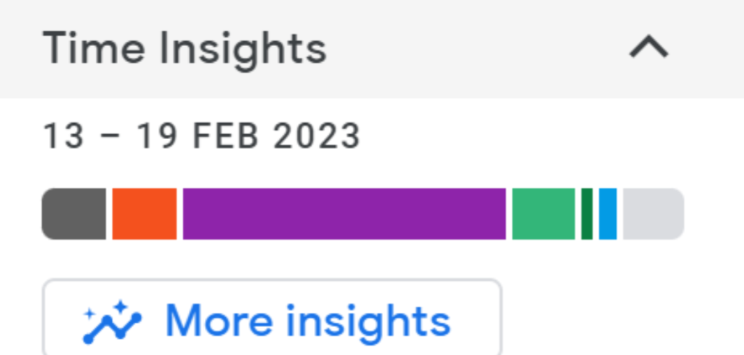 Have you been fortunate enough to have turned on ‘Time Insights’ within your Google calendar? I wasn’t aware of the feature until now, (released in 2021). Insights is a feature that gives you the ability to better understand how you're spending your time in Google Calendar.
